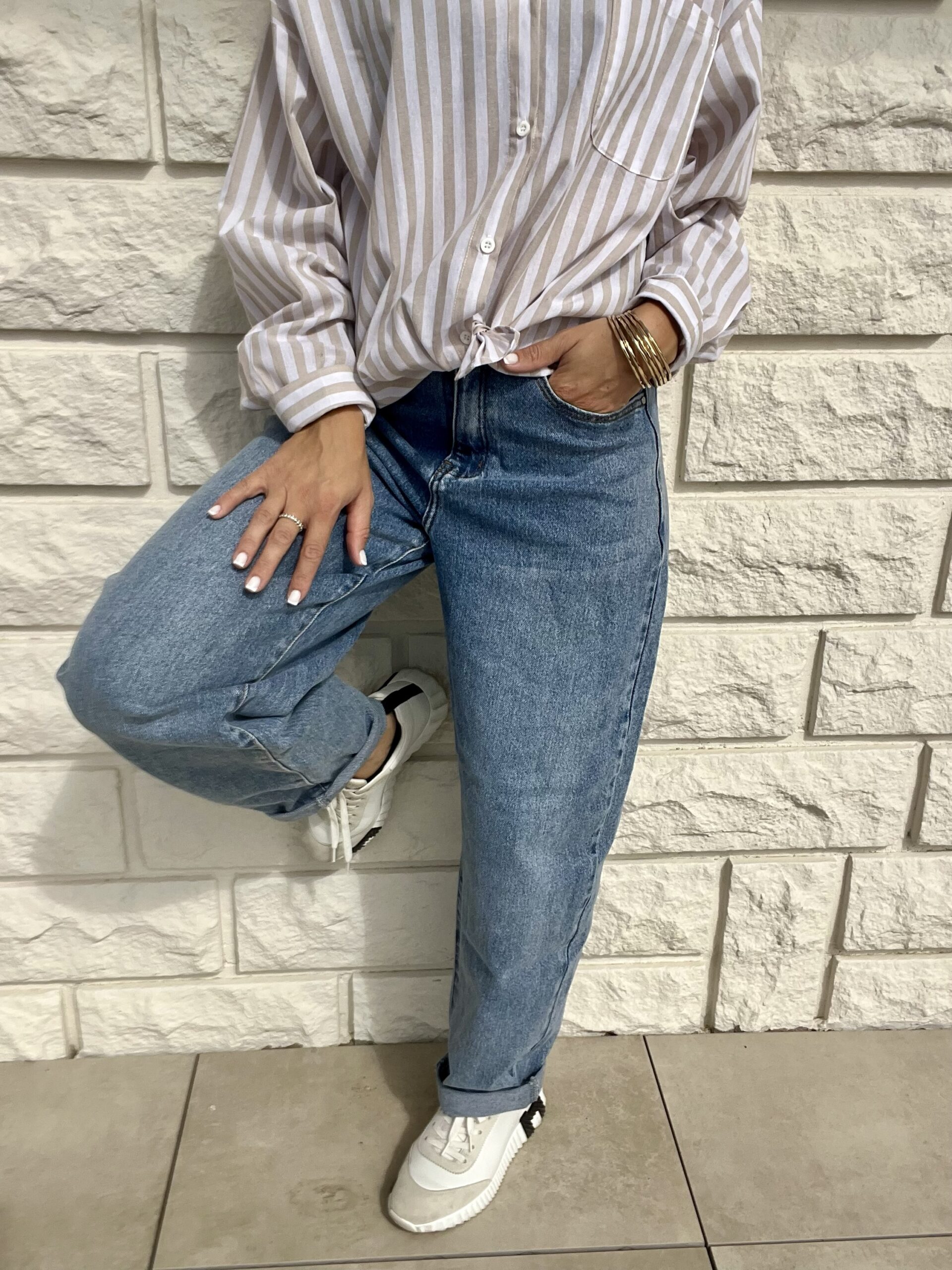 Fermeture : le jean se ferme avec un bouton argenté et une fermeture à zip