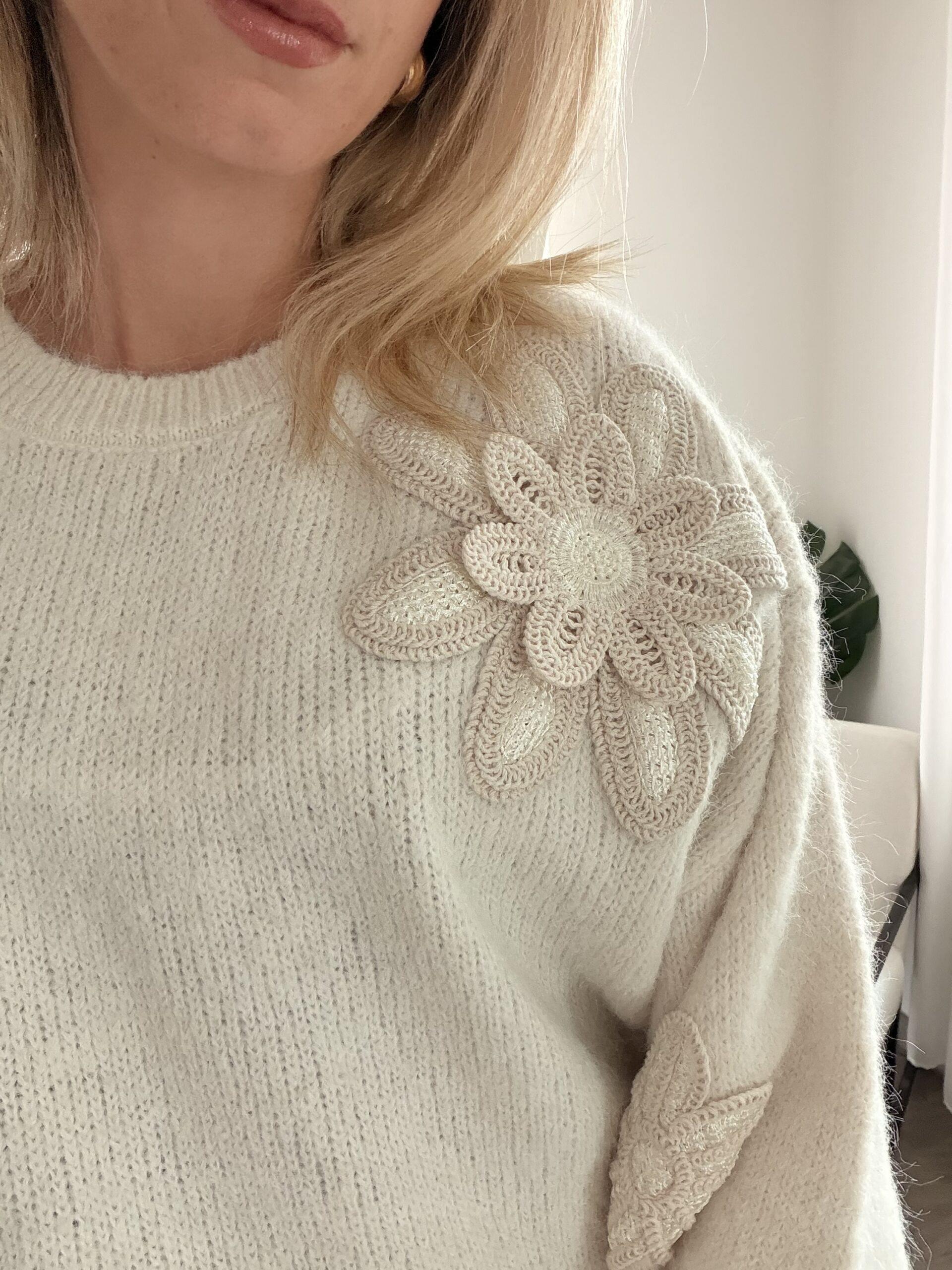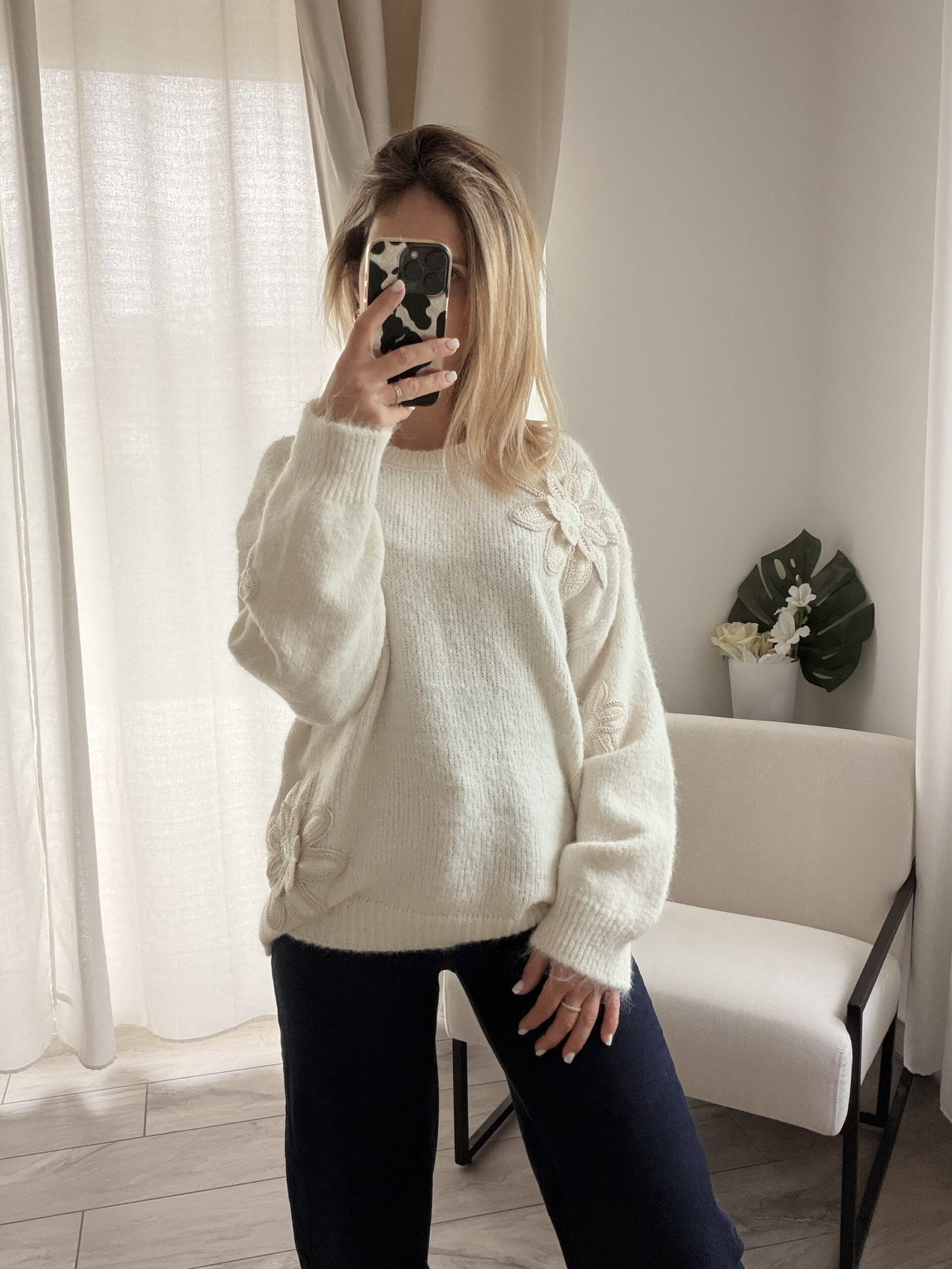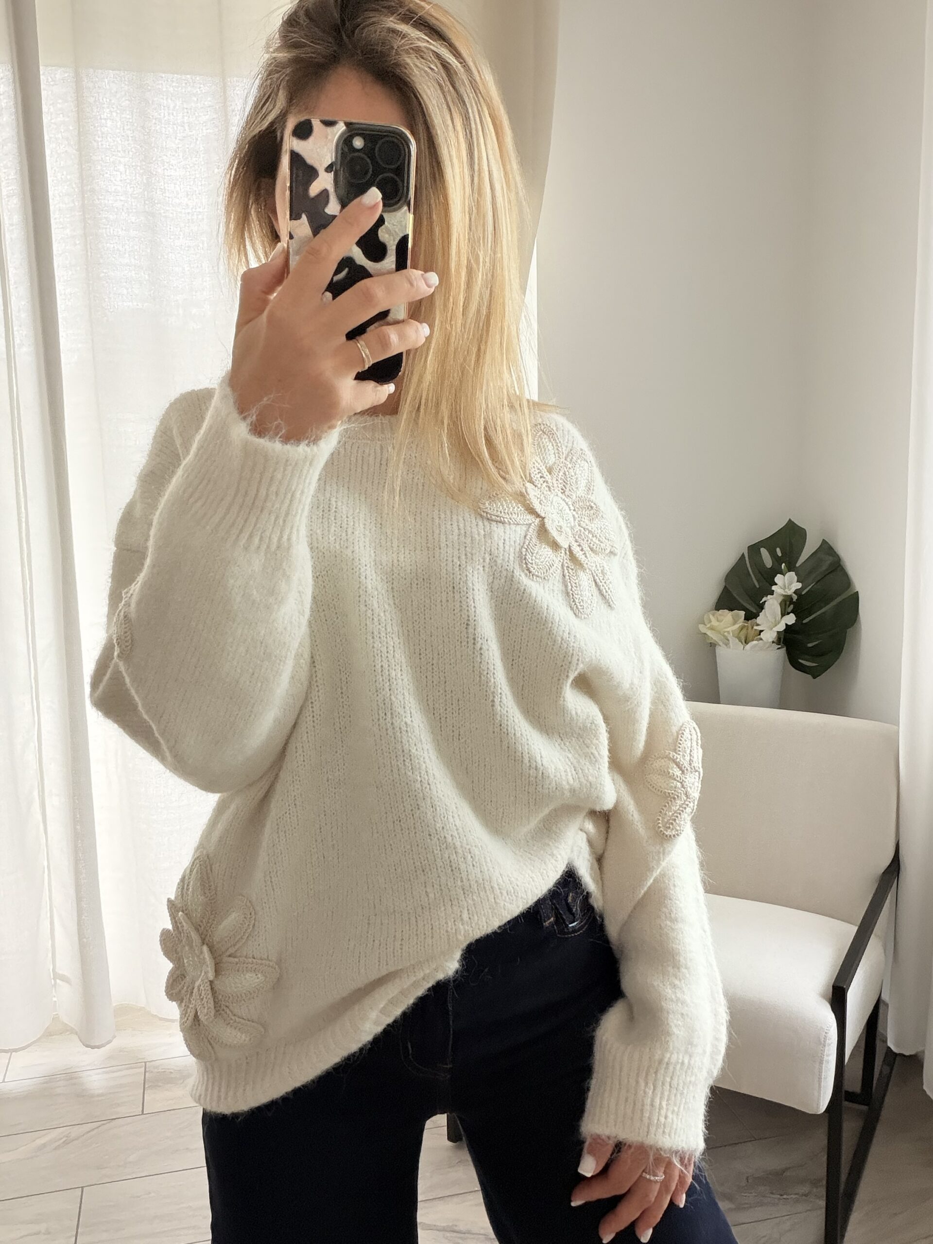 Avec ce pull blanc cassé et ses fleurs en relief votre look aura un effet comfy