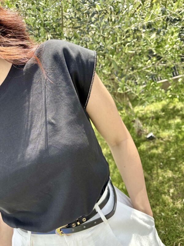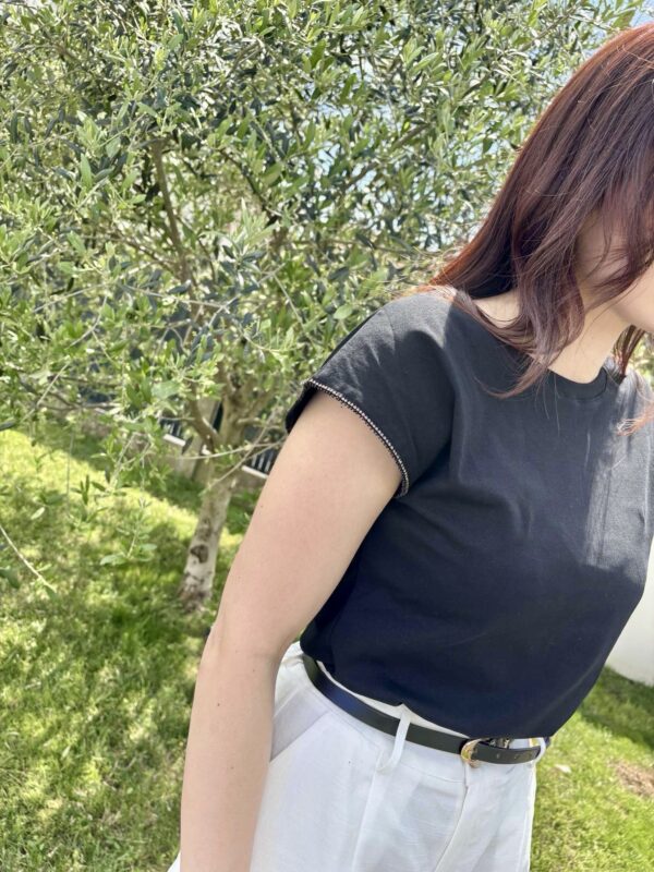 Son petit plus ? Un liseré bijou apposé sur le contour des manches qui apport une finition précieuse à ce basique.