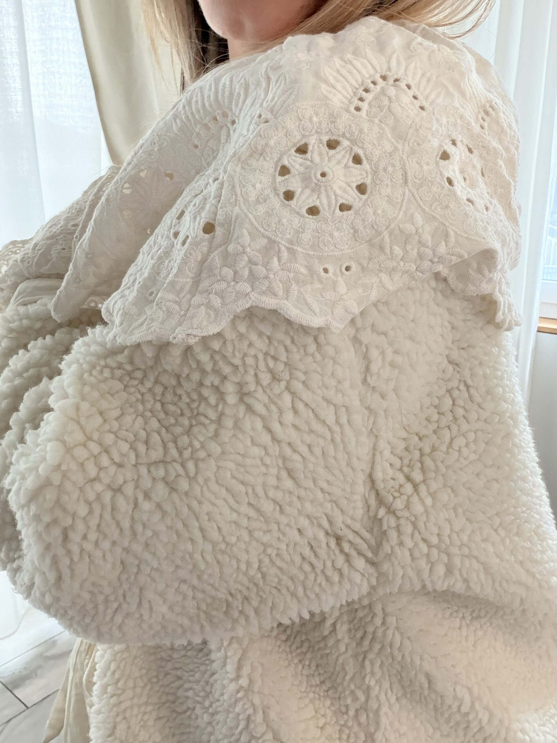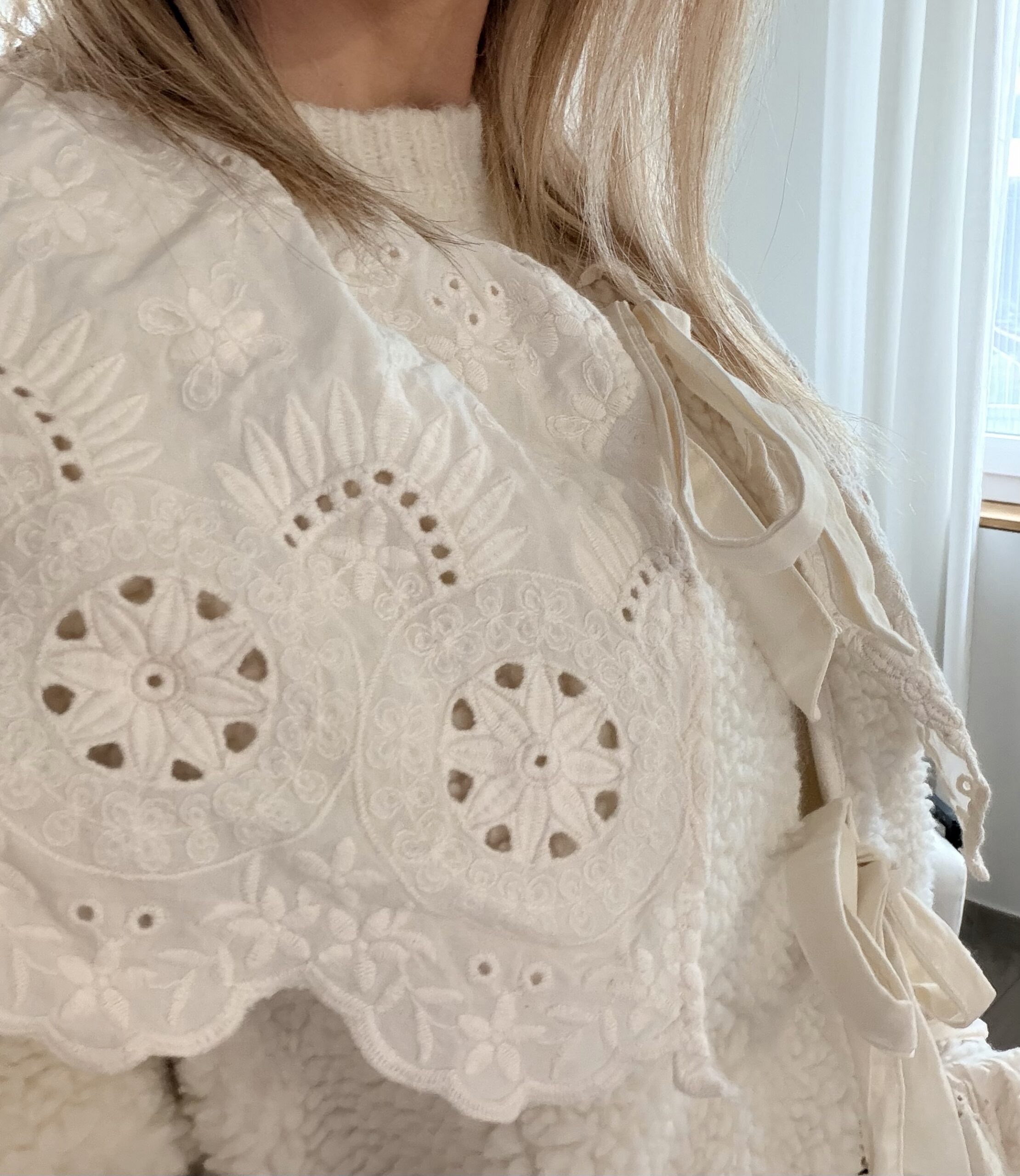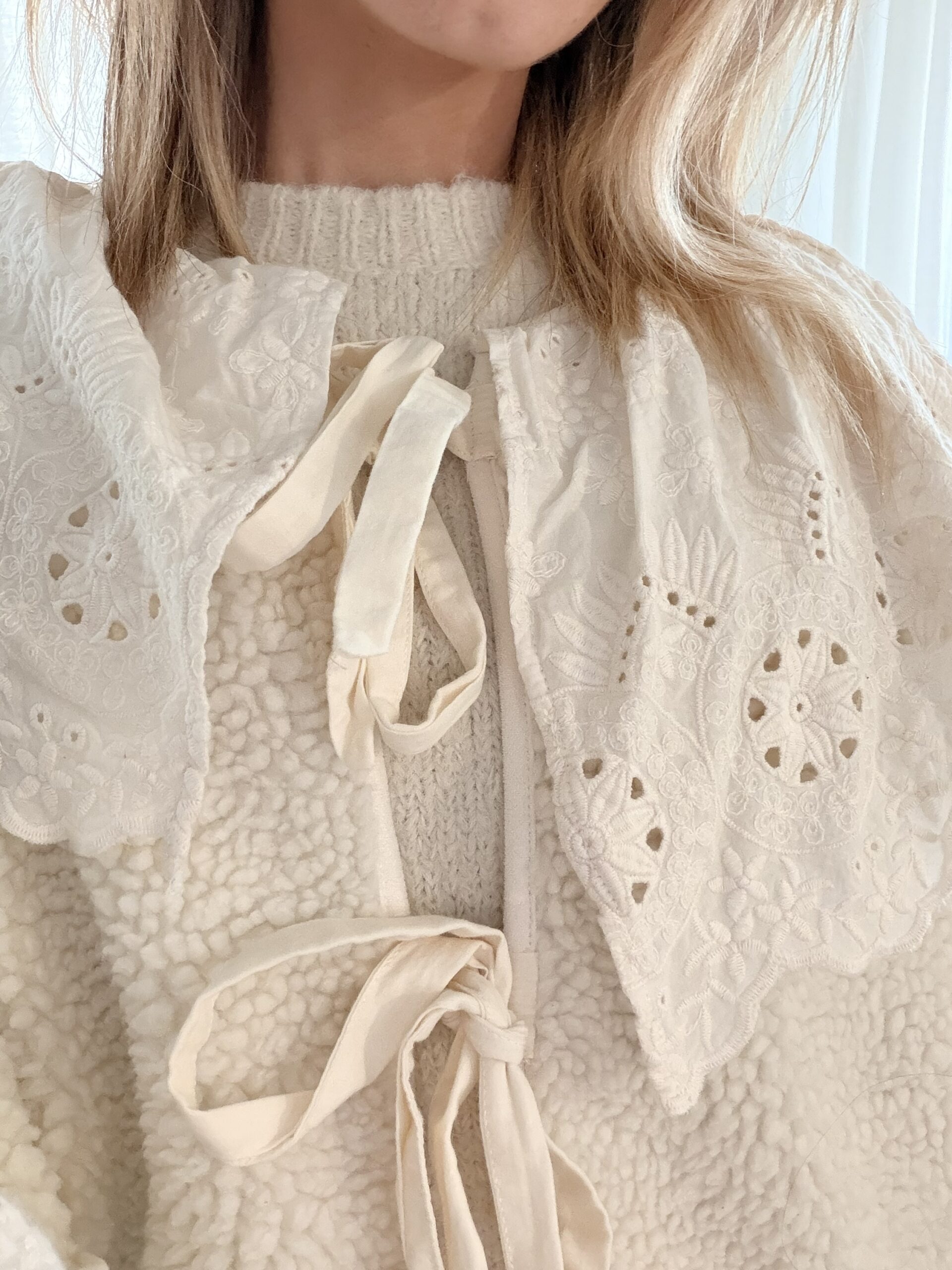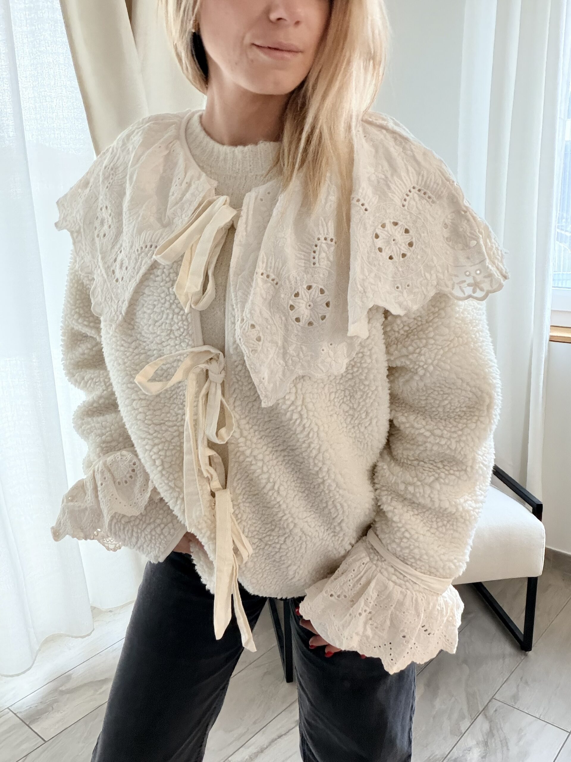 Fermeture : la veste se ferme avec des noeuds à nouer sur le devant